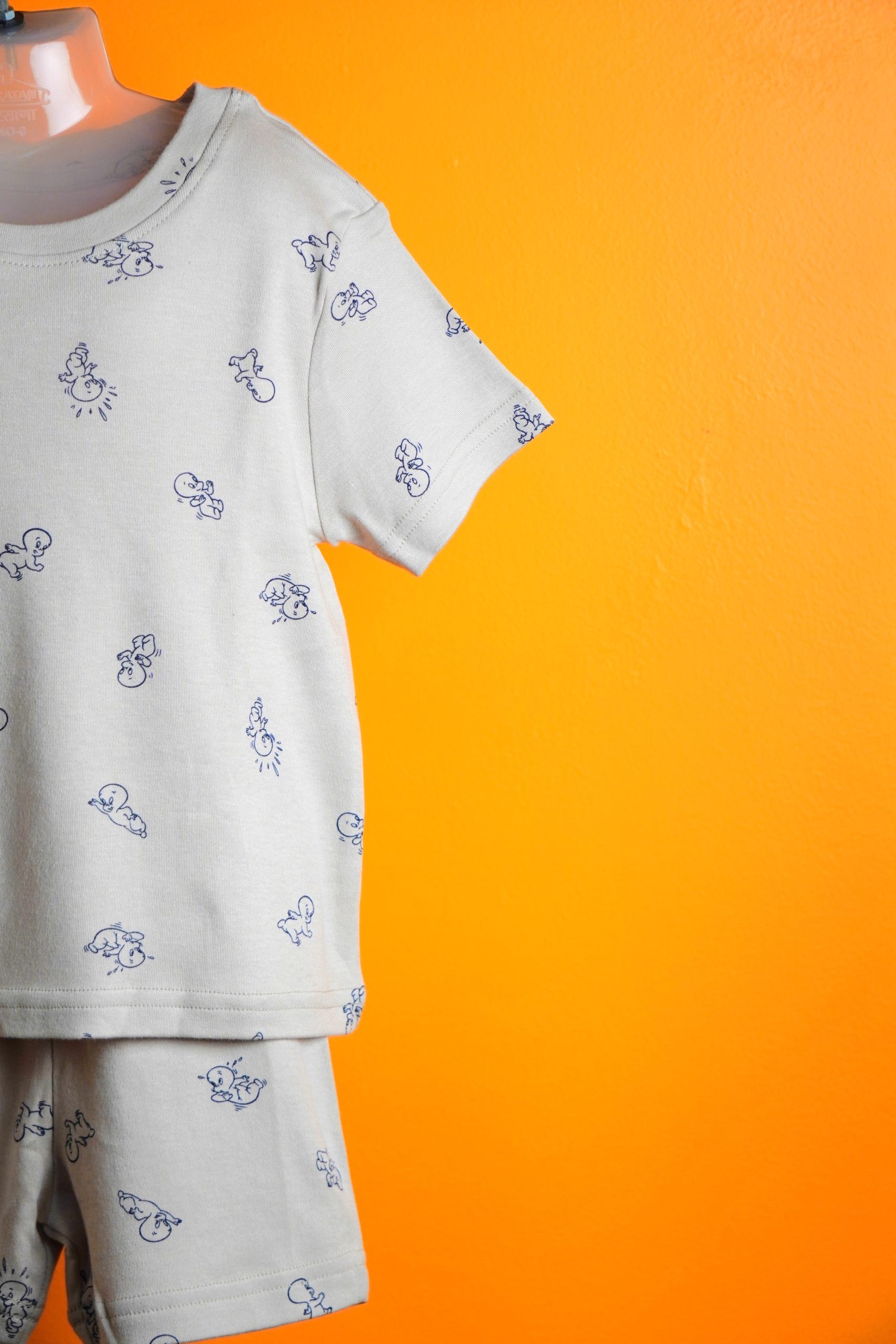 Let your little one step into a world of wonder with this charming co-ord set, featuring a short-sleeved shirt and matching shorts in a soft beige hue. Adorned with a delightful parade of blue cartoon animals, this outfit brings storybook magic to everyday play. Crafted from breathable fabric and designed for easy movement, itโs ideal for sunny adventures, cozy naps, or picture-perfect moments.